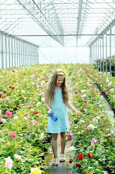 Девушка поливает цветы