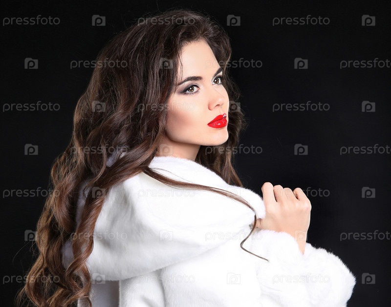 Красивая брюнетка в белой шубке