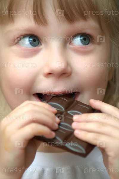 Девочка ест шоколад