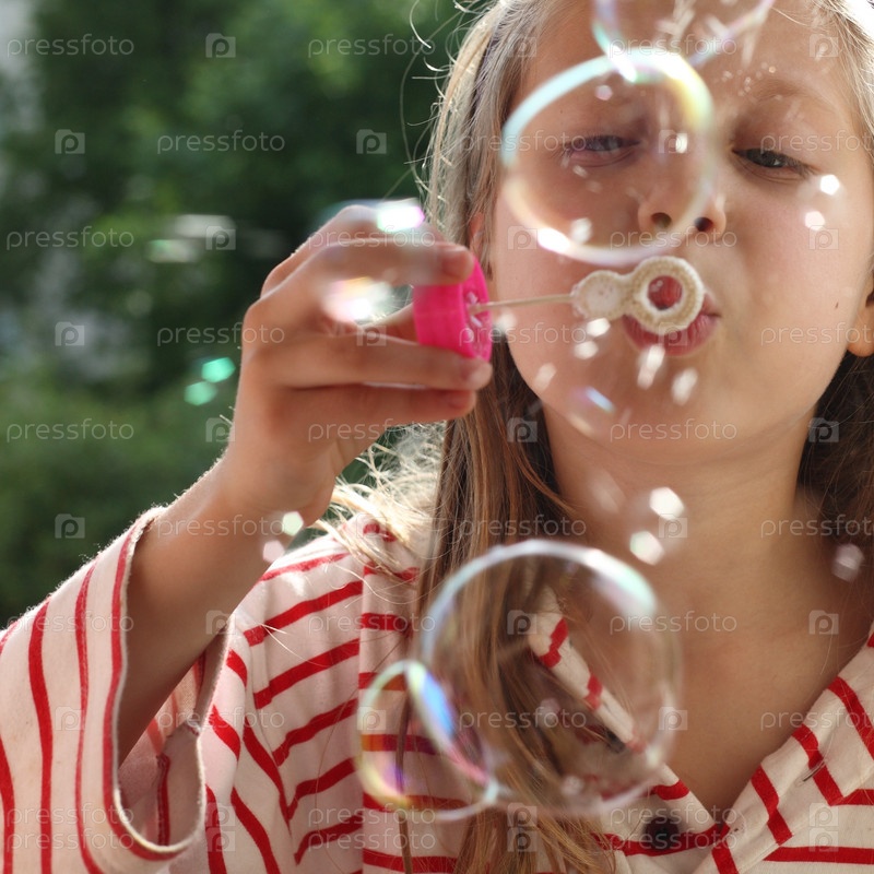 Девочка пускает мыльные пузыри