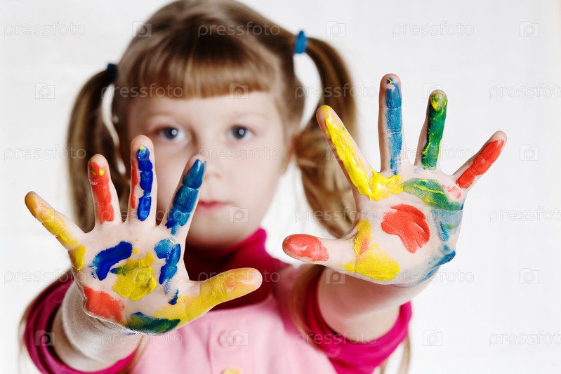 Маленькая девочка с испачканными в красках руками