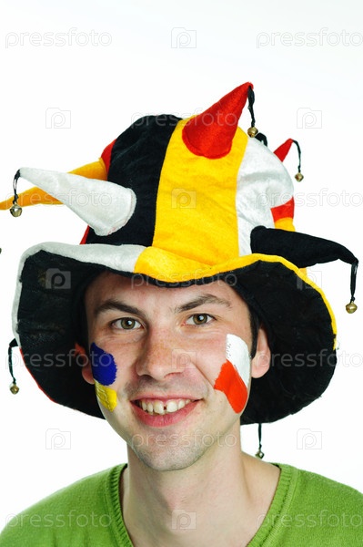 Футбольный фанат на белом фоне