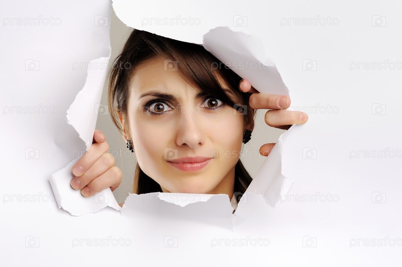 Девушка смотрит через дыру