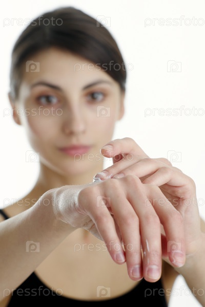 Девушка наносит крем на кожу