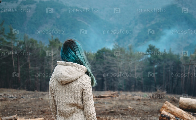 Женщина, глядя на лес