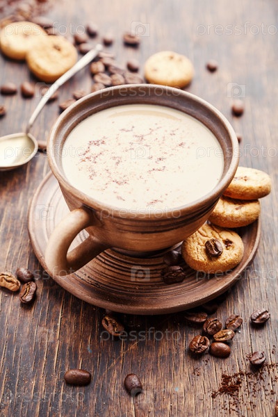 Кофе с молоком и печенье