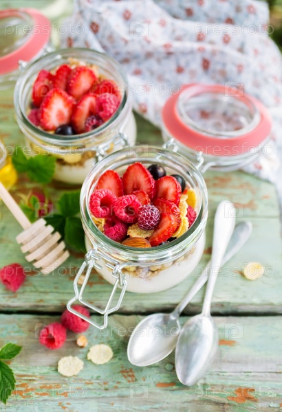 Йогурт и мюсли с ягодами