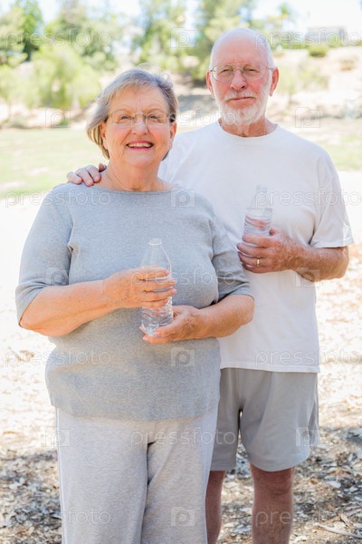 Пожилая пара с бутылкой воды