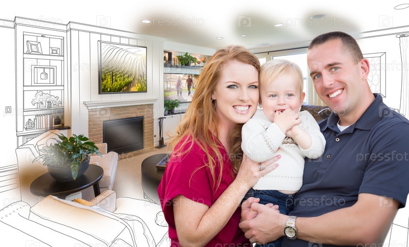 Семья перед новой гостиной