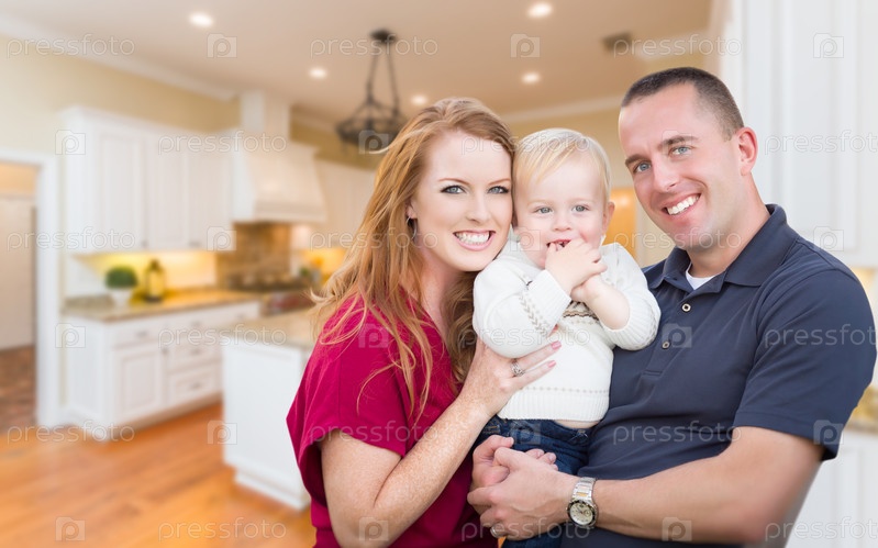 Молодая семья на красивой кухне