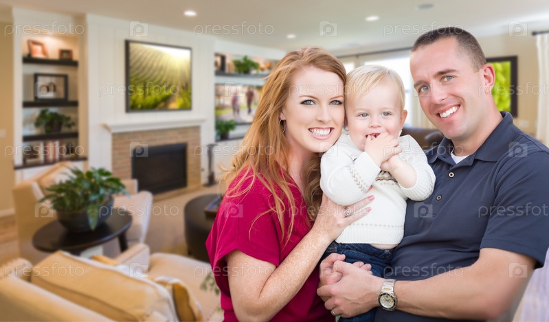 Молодая семья в красивой гостиной