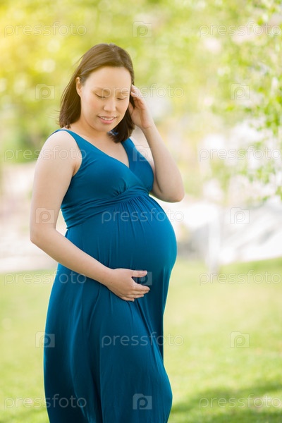 Молодая беременная китаянка в парке