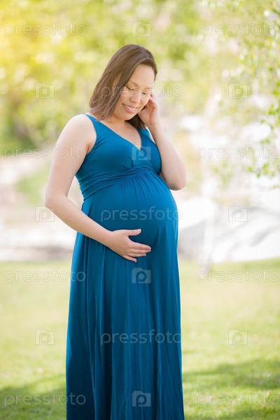 Молодая беременная китаянка в парке
