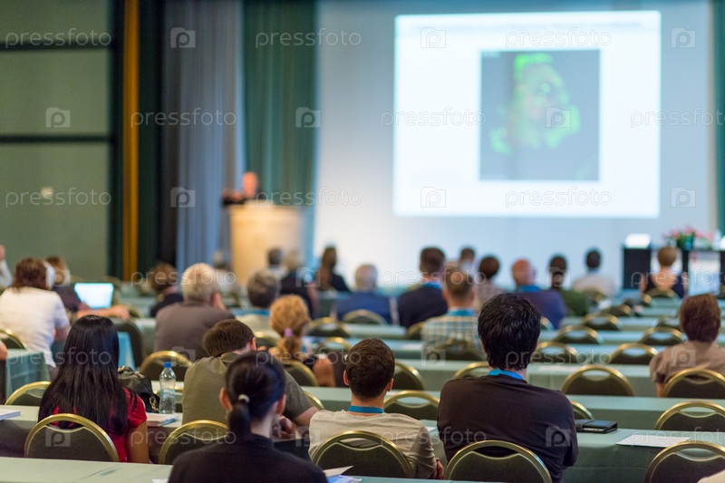 Аудитория в лекционном зале на научной конференции