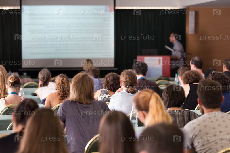 Аудитория в лекционном зале на научной конференции