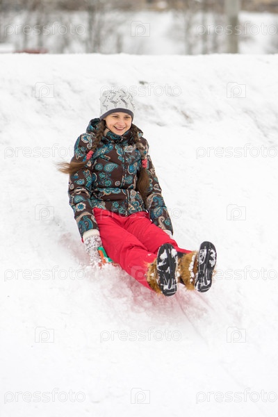 Катание с горки в зимнее время