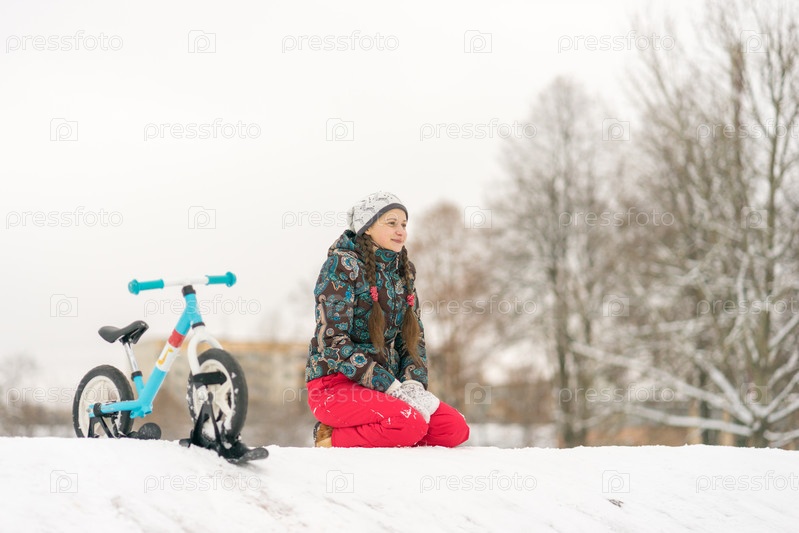 Молодая девушка на снежной горке