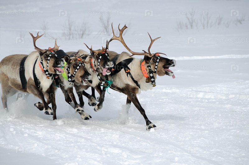 Гонка оленей на снежном поле