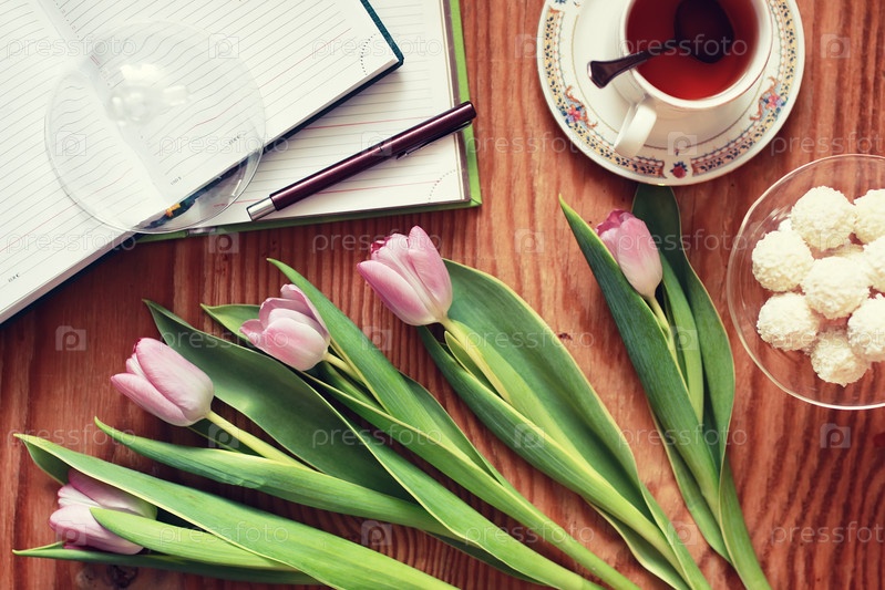 Тюльпаны и сладости к чаю