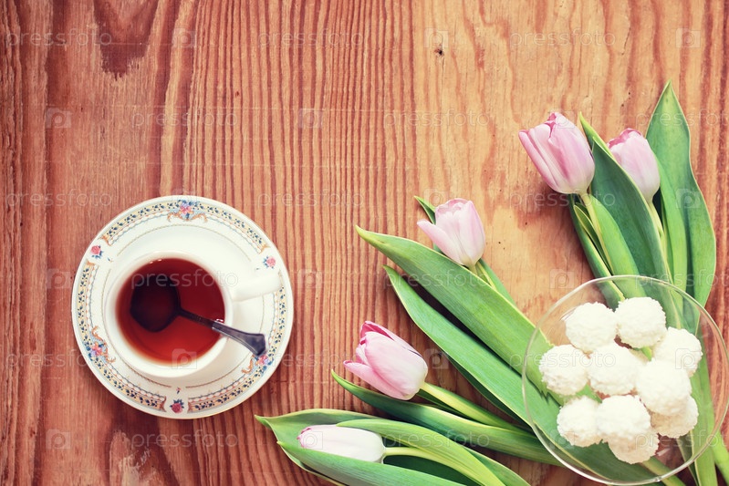Тюльпаны и сладости к чаю