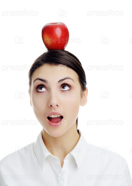 Портрет красивой молодой женщины с яблоком