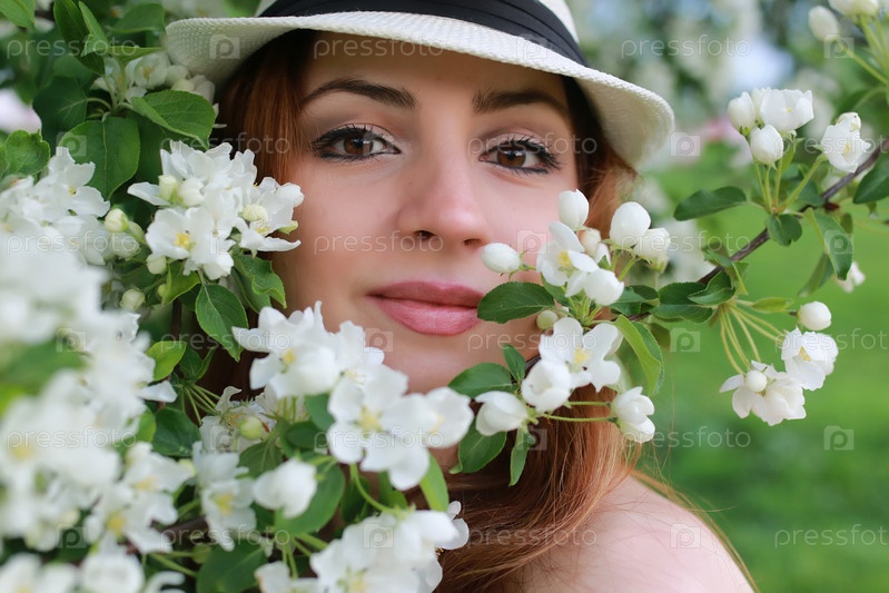 Девушка у цветочного дерева