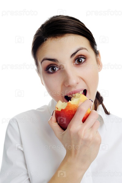 Портрет красивой молодой женщины с яблоком