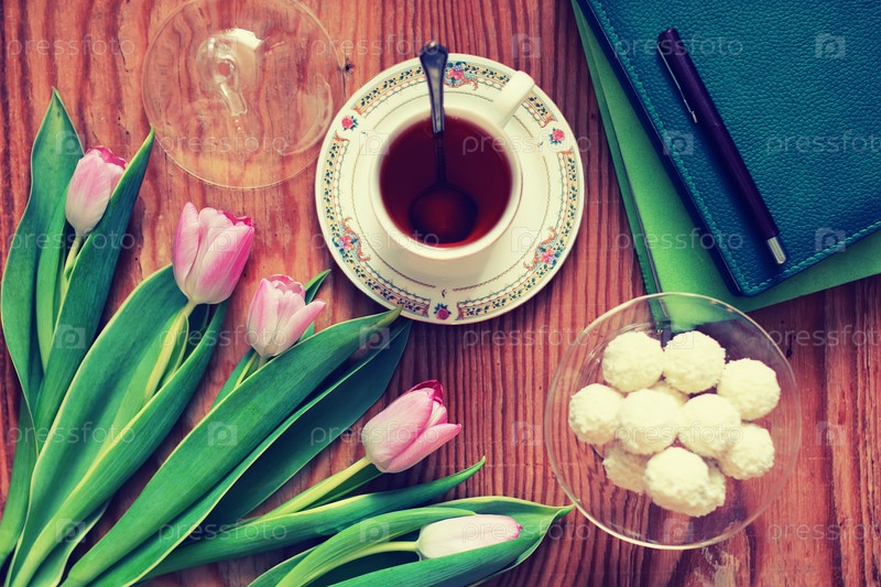 Тюльпаны и сладости к чаю