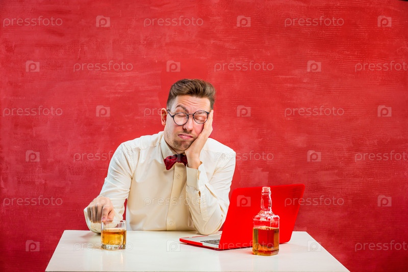 Мужчина с коньяком за ноутбуком