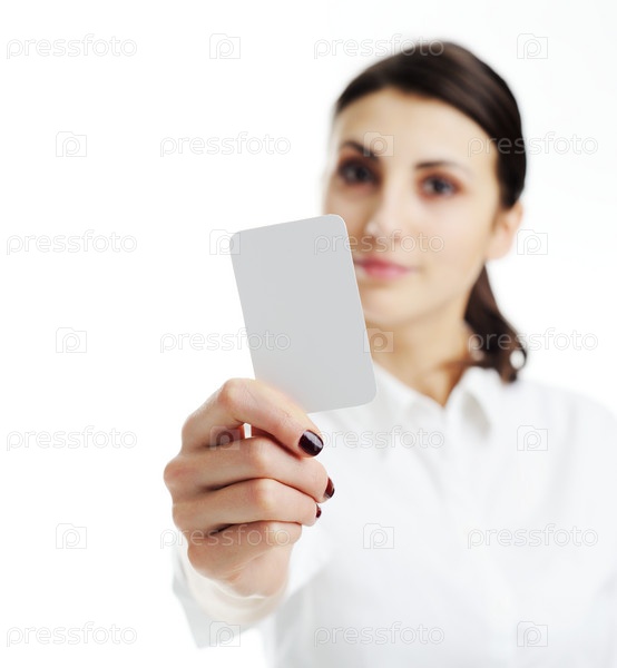 Деловая женщина протягивает визитку