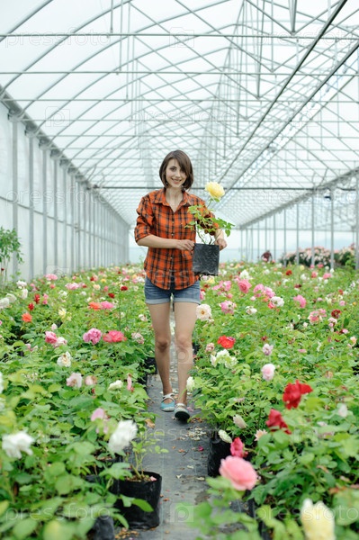 Женщина, работающая в оранжерее