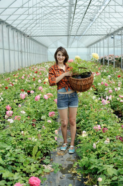 Женщина, работающая в оранжерее