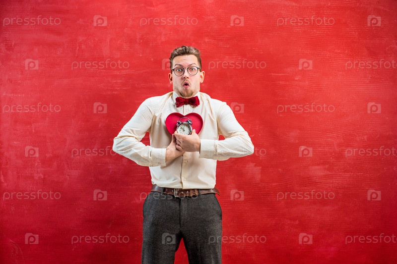 Забавный парень с сердцем и будильником