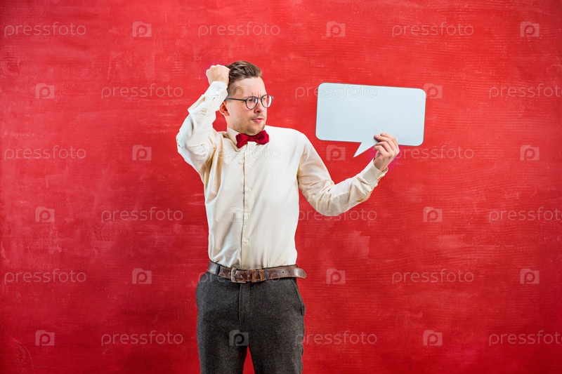 Забавный парень с пустой табличкой для цитаты