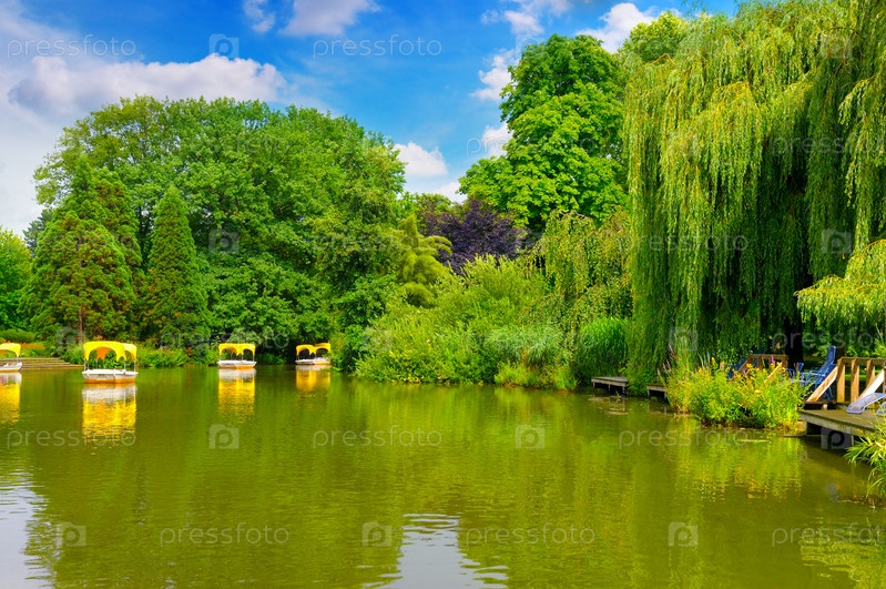 Живописное озеро и лодки