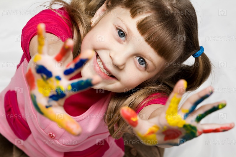 Девочка с руками в краске