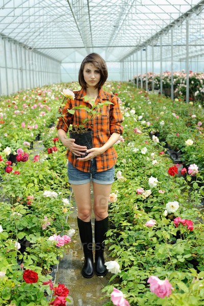 Девушка, работающая в оранжерее