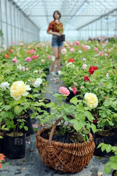Девушка, работающая в оранжерее