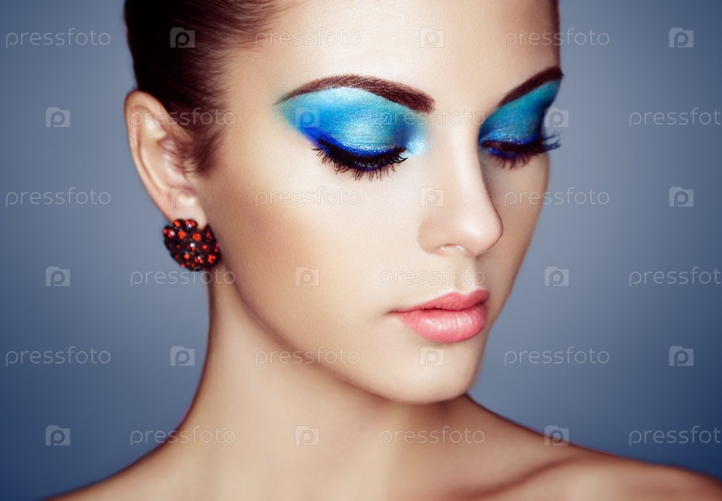 Портрет молодой красивой женщины с голубым макияжем