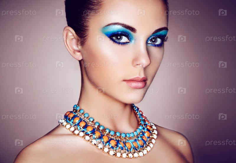 Портрет молодой красивой женщины с голубым макияжем