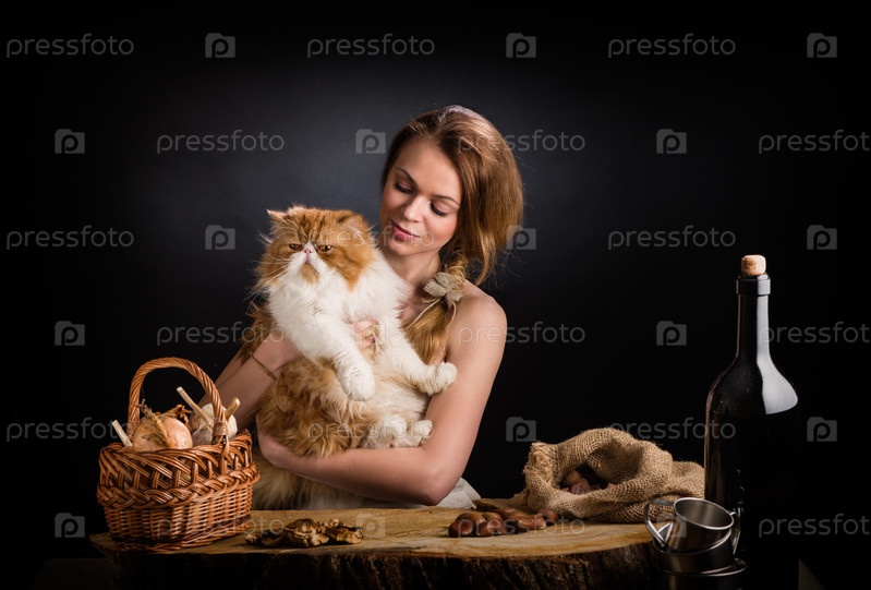 Молодая красивая девушка с котом