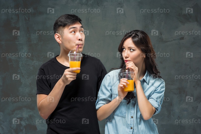 Молодая пара с напитками