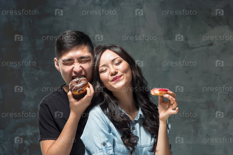 Молодая азиатская пара с пончиками
