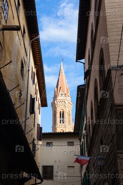 Колокольня над старой улице в городе Флоренция