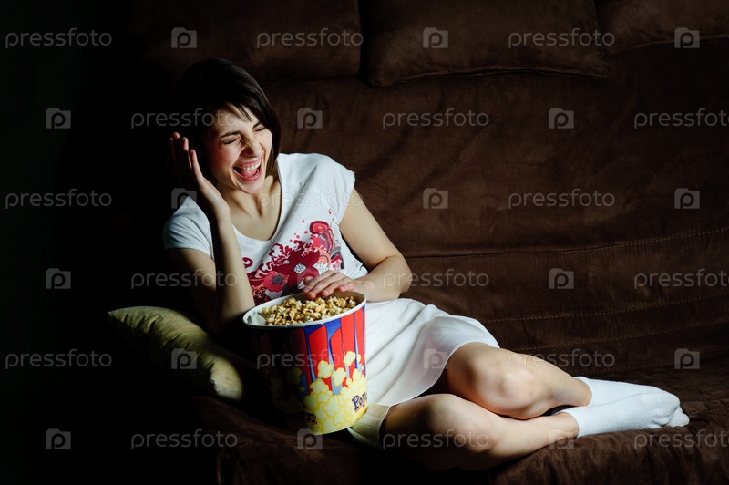 Молодая девушка за просмотром кинофильма