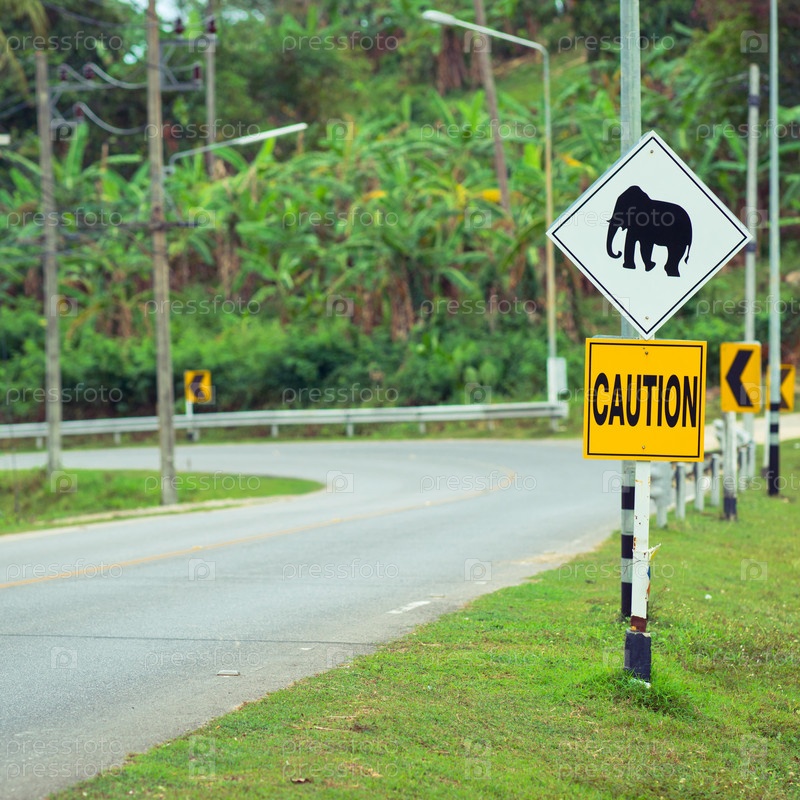 Дорожный знак со слоном в Таиланде