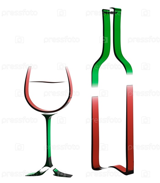 Абстрактные бутылка вина и бокал
