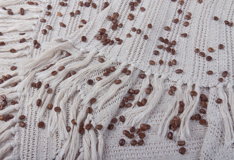 Кофейные зерна на фоне текстиля