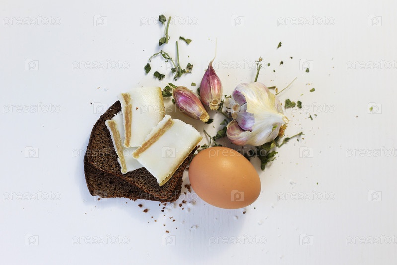 Соленое сало с хлебом и чесноком