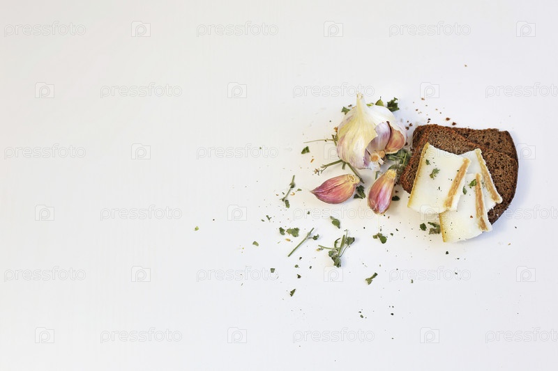 Соленое сало с хлебом и чесноком